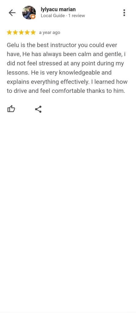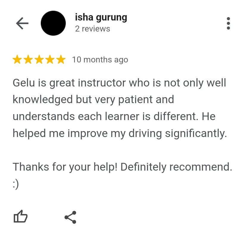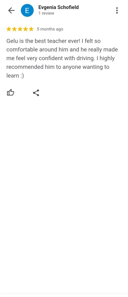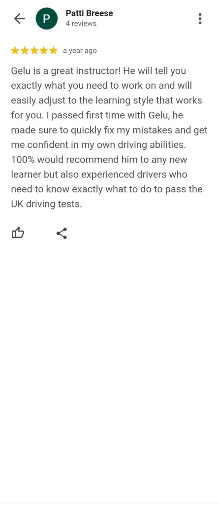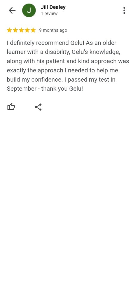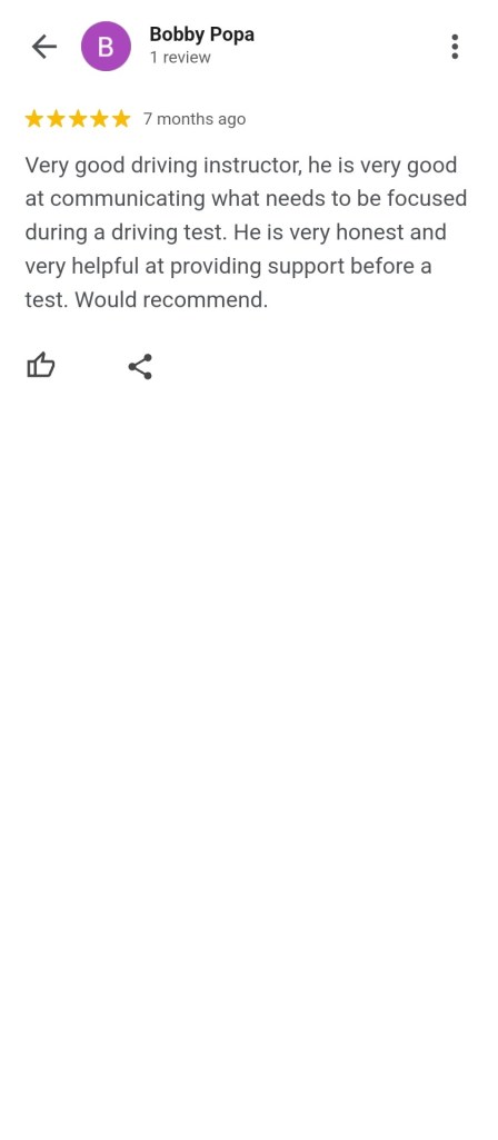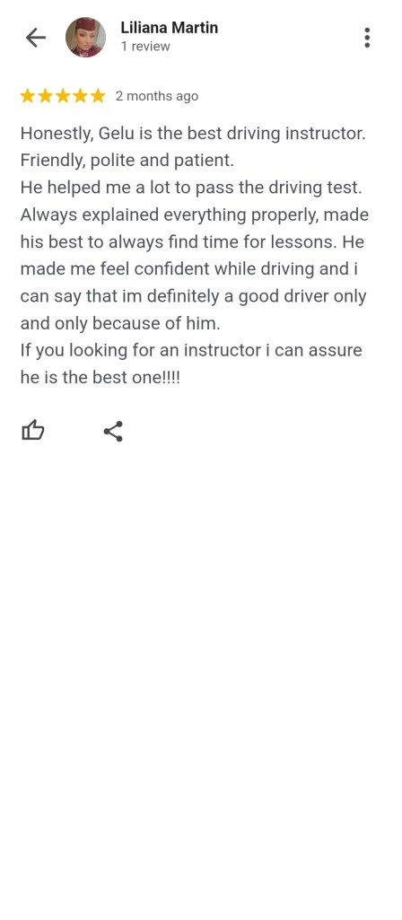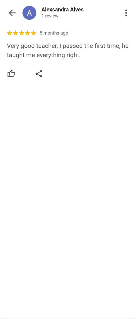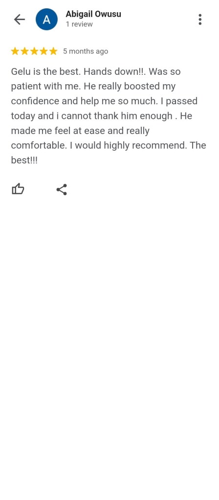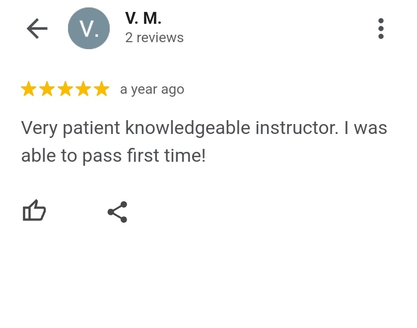 Reading my reviews and ratings, you’ll see a consistent theme of satisfied students who have enjoyed their learning experience and achieved their driving goals. I am dedicated to maintaining these high standards and continuing to provide exceptional instruction to all my learners.
