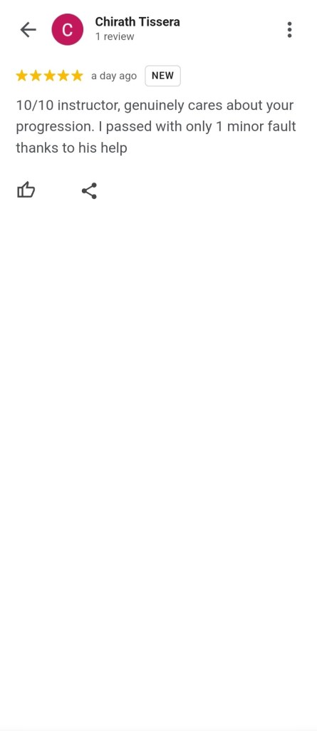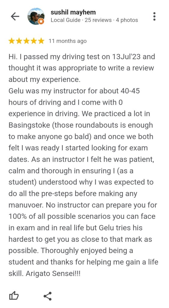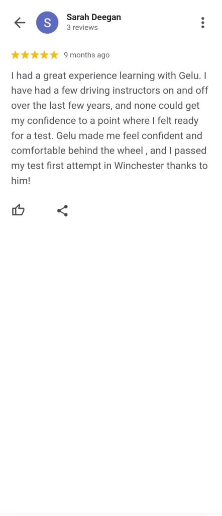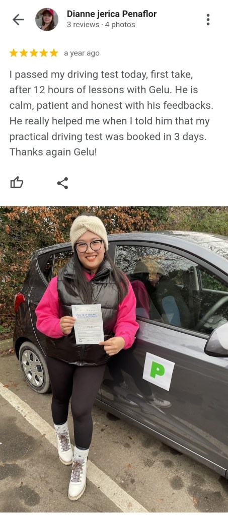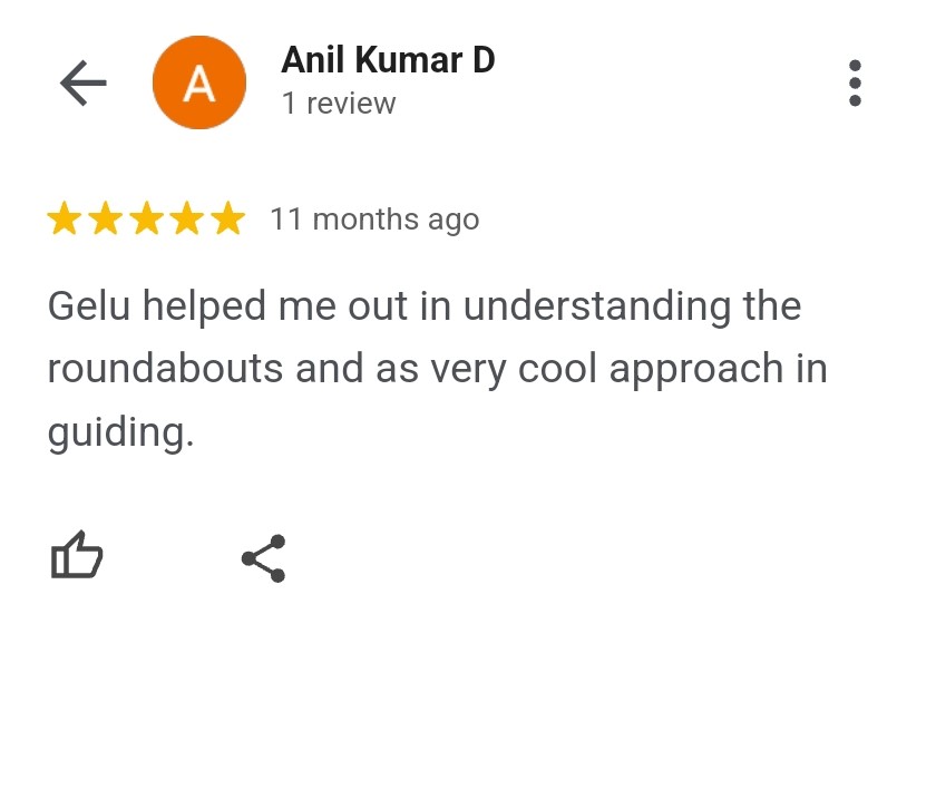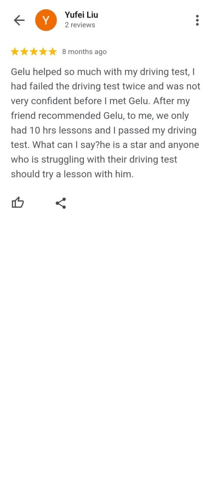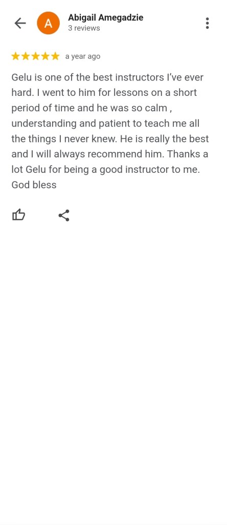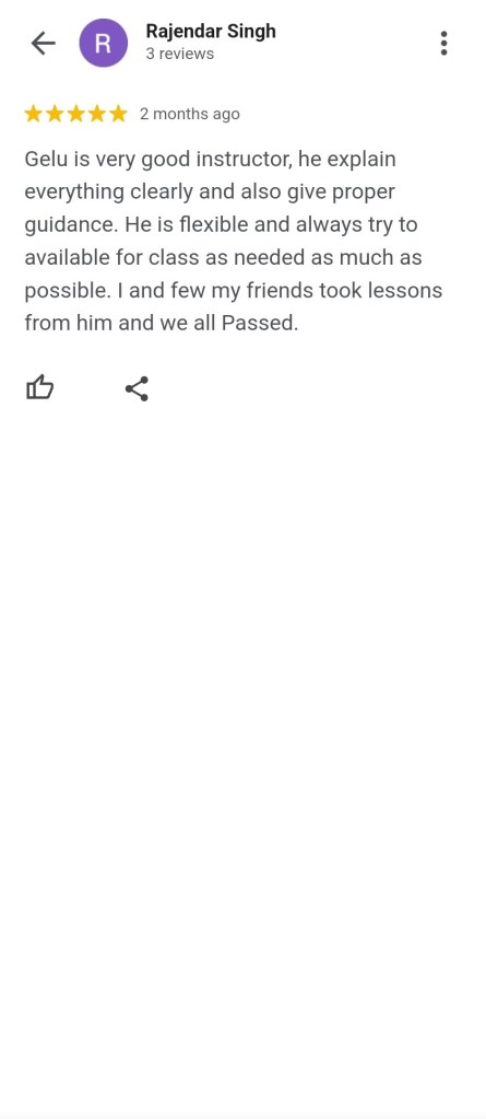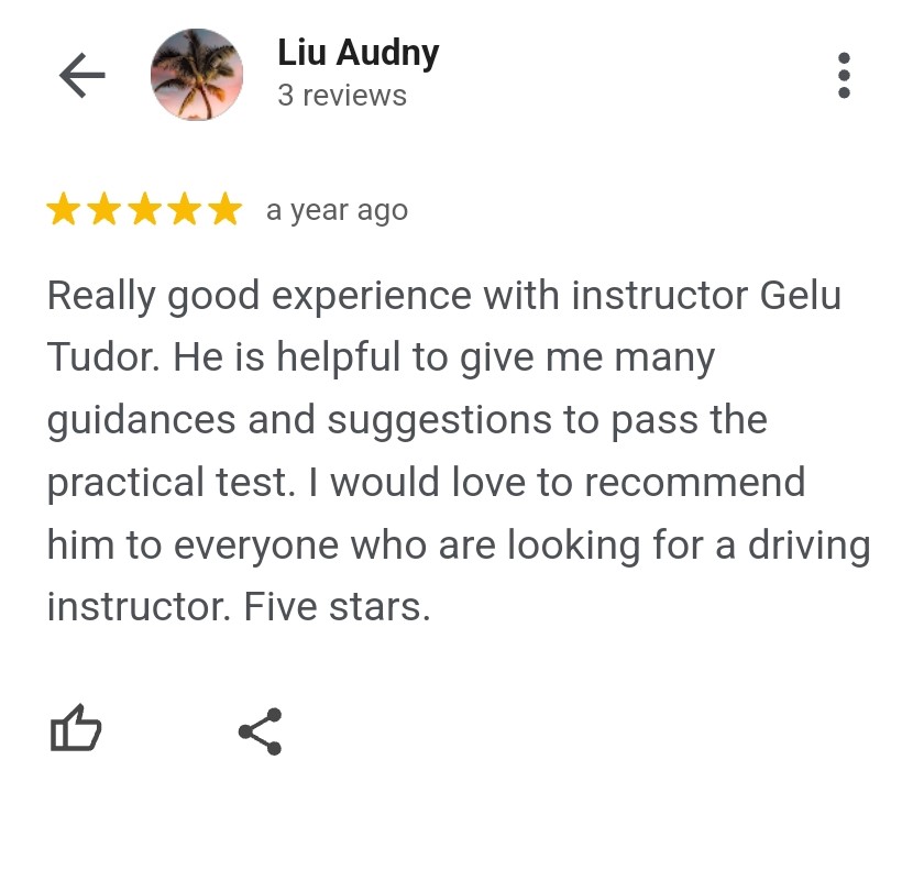 Reading my reviews and ratings, you’ll see a consistent theme of satisfied students who have enjoyed their learning experience and achieved their driving goals. I am dedicated to maintaining these high standards and continuing to provide exceptional instruction to all my learners.
